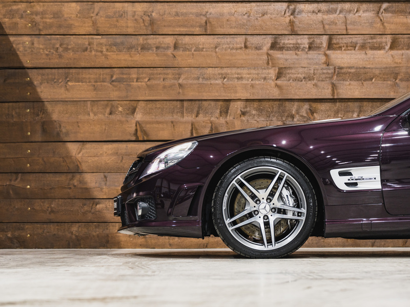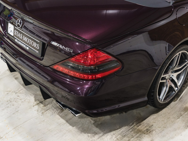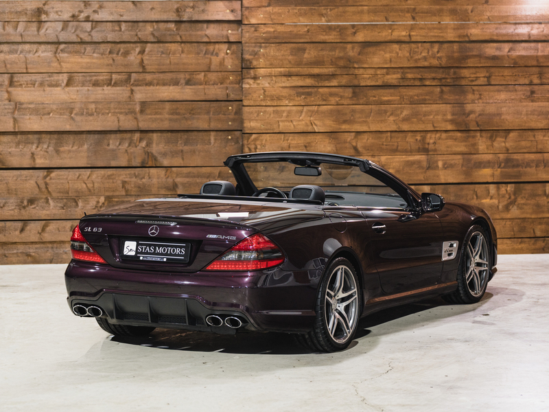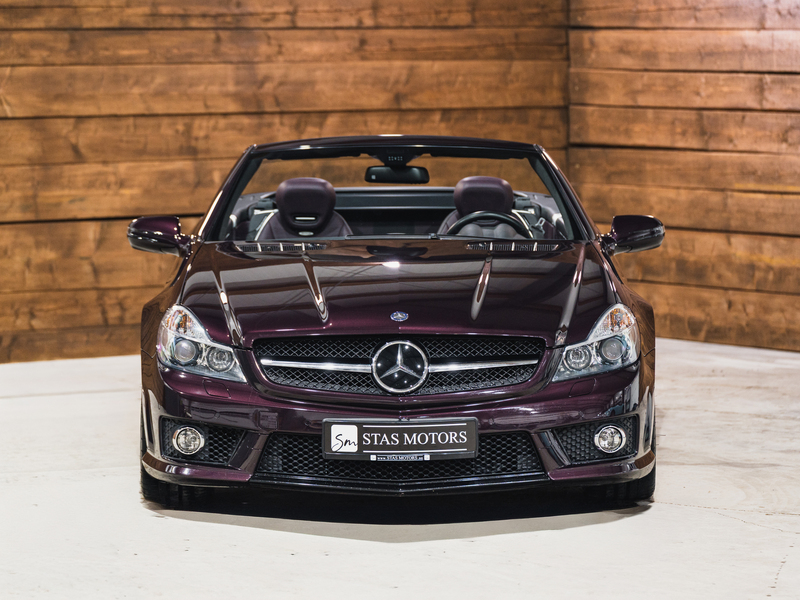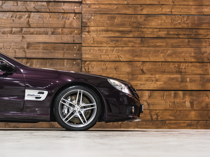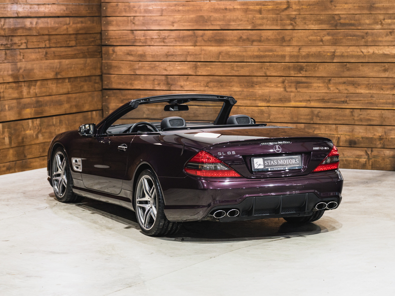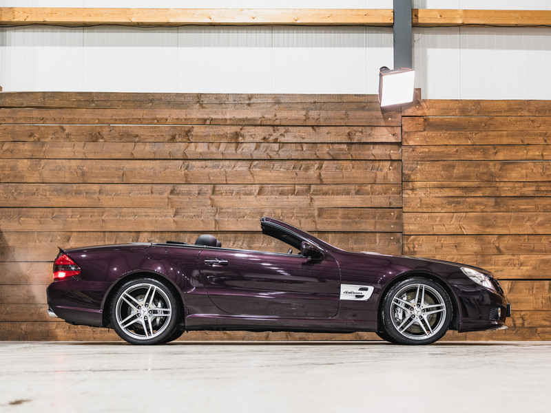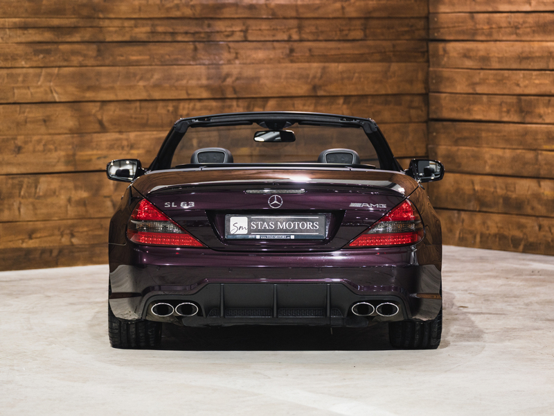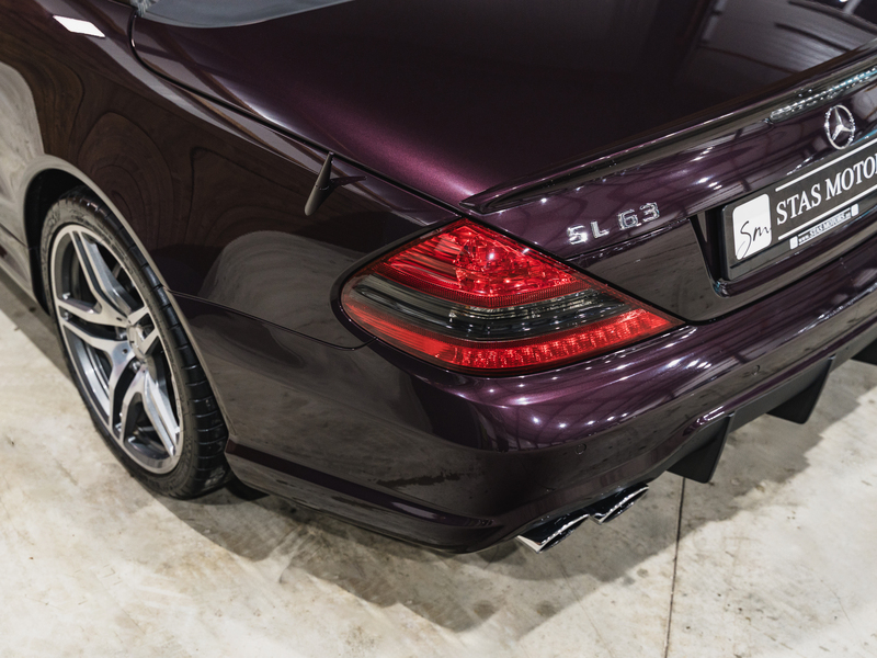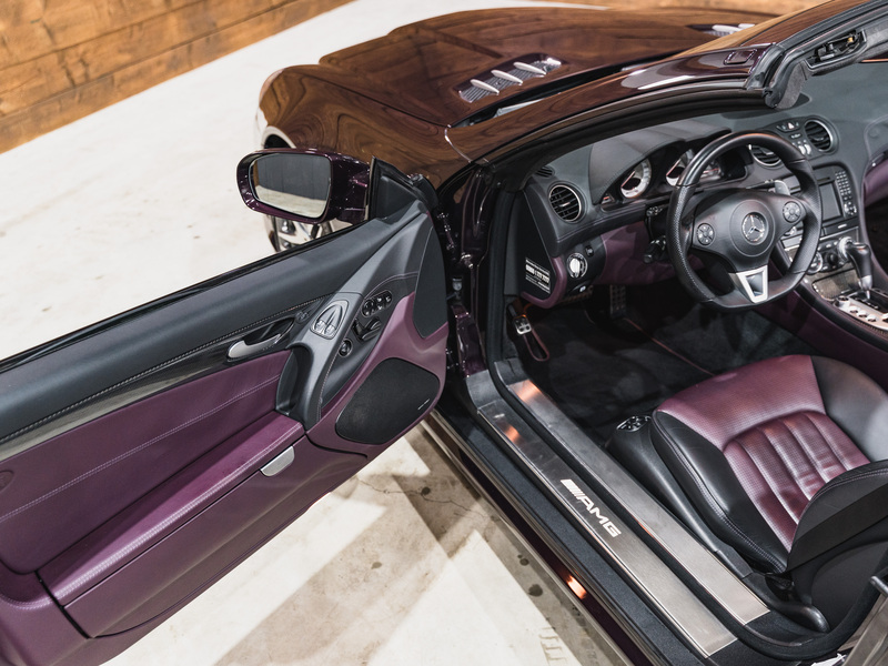 2008 Mercedes-Benz SL 63 AMG Designo in der seltenen Farbe Almandinschwarz Metallic mit einer einmaligen Sonder Nappa Lederausstattung in Schwarz/Lila.