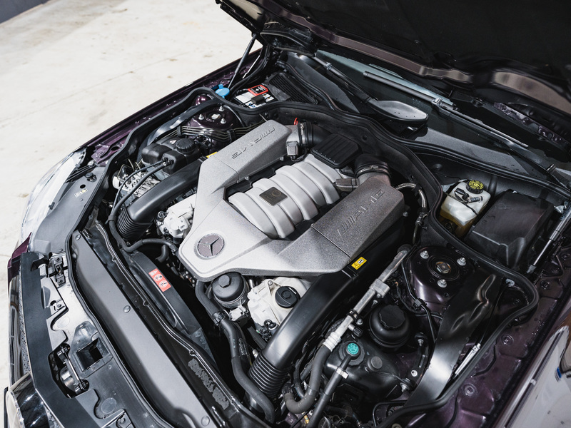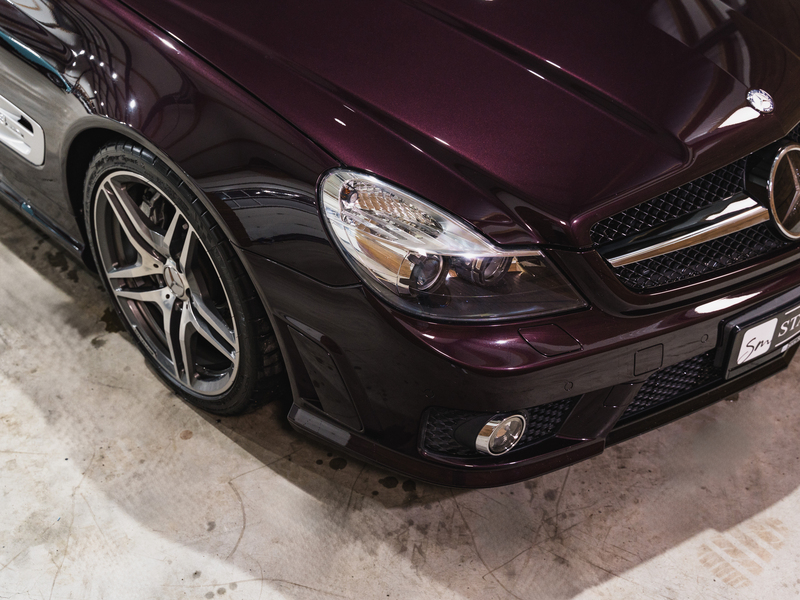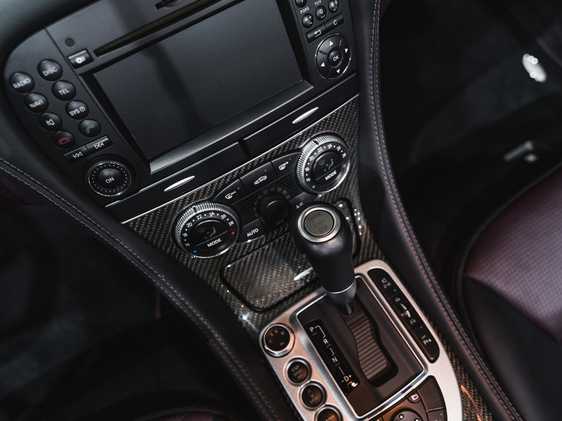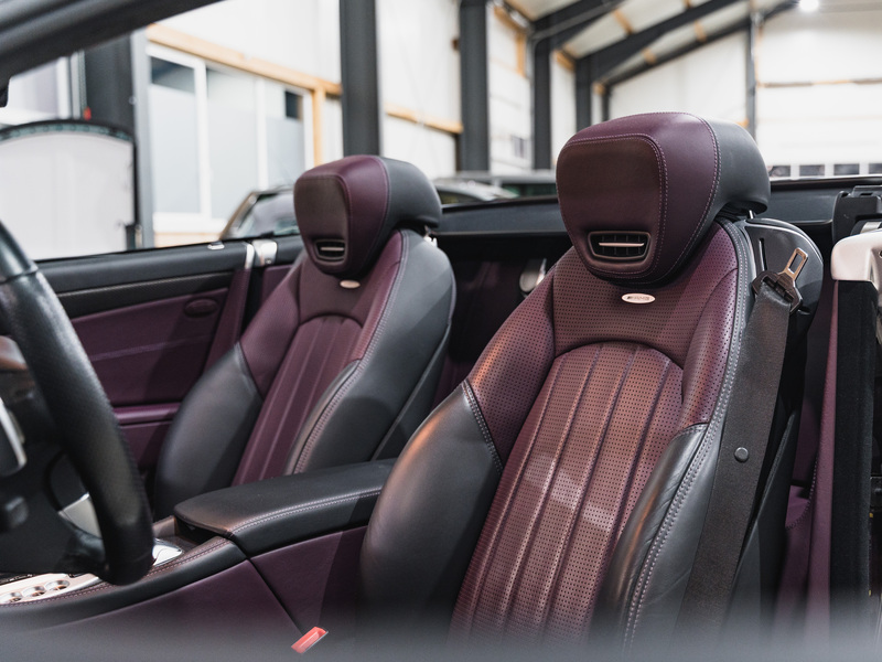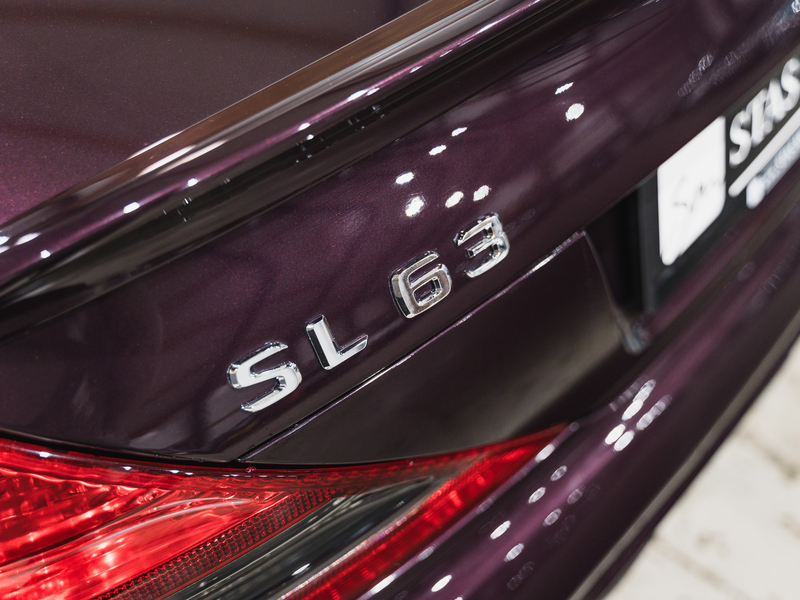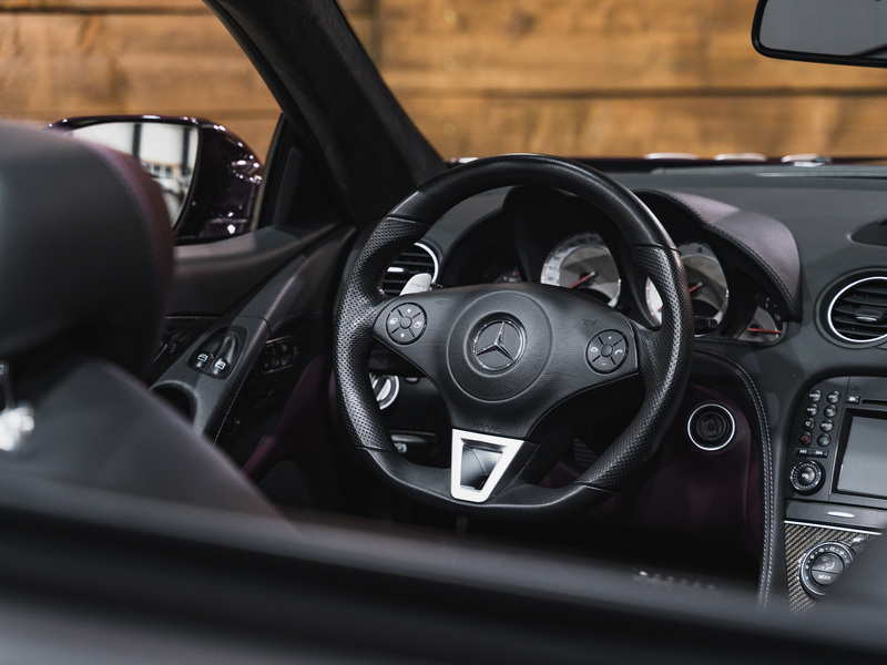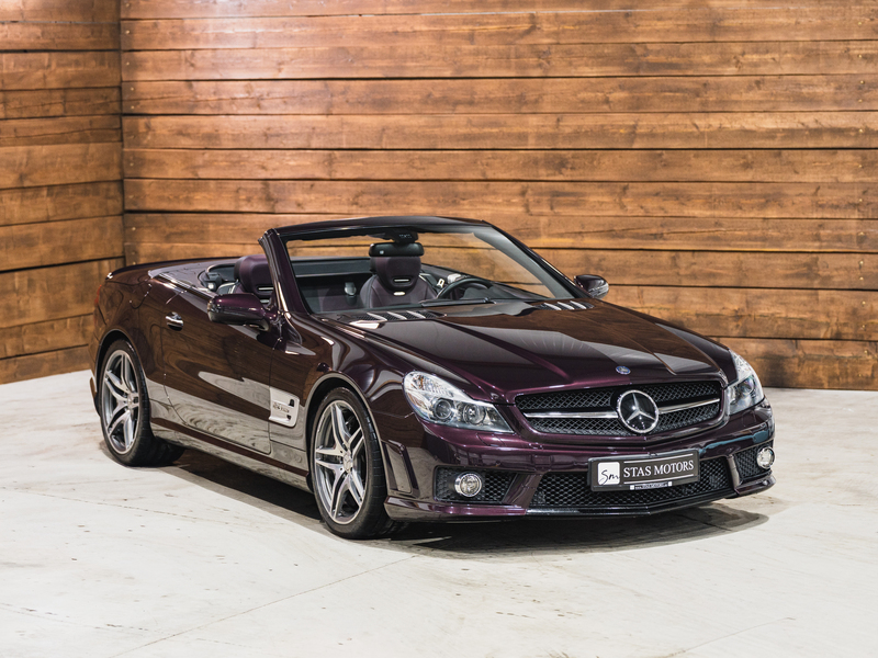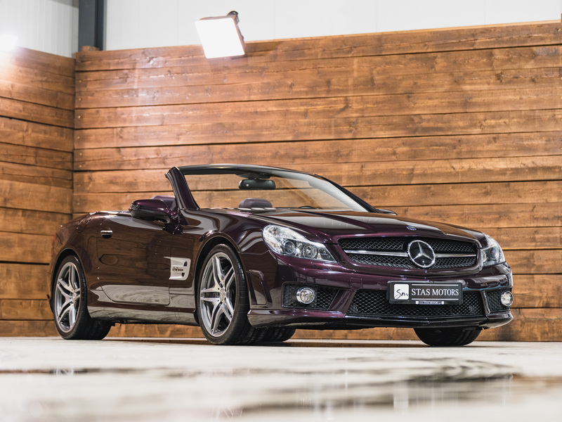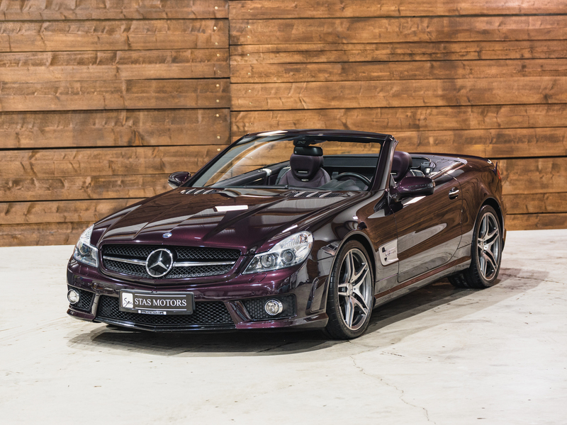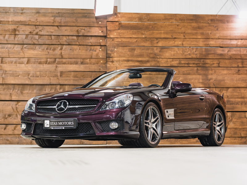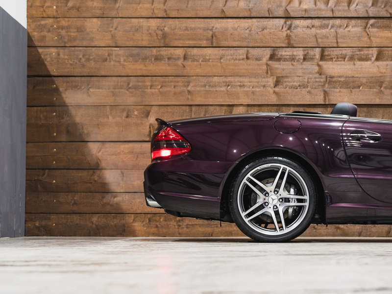 2008 Mercedes-Benz SL 63 AMG Designo in der seltenen Farbe Almandinschwarz Metallic mit einer einmaligen Sonder Nappa Lederausstattung in Schwarz/Lila.