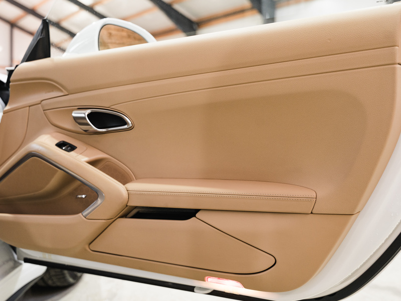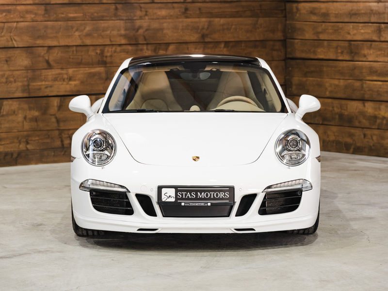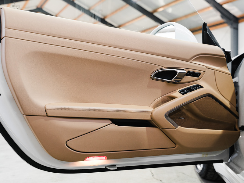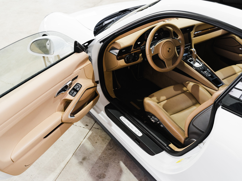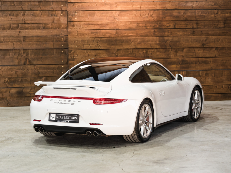 2013 Porsche 991.1 Carrera 4S Coupe als PDK in Pure White/Weiß mit einer beigen Volllederausstattung und Mahagoni Dekorleisten.
