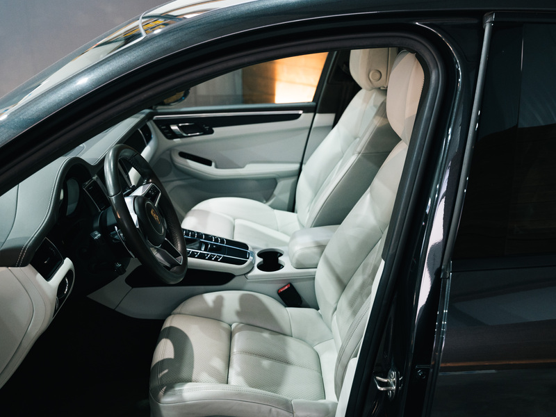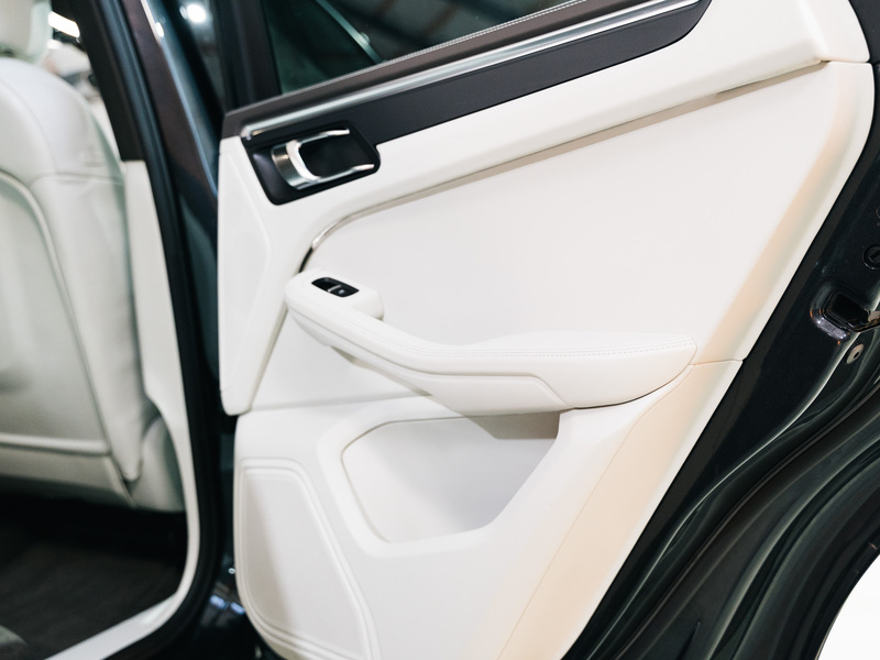 Außen-/Innenspiegel mit Abblendautomatik, Bi-Xenon-Scheinwerfer inkl. Porsche Dynamic Light System (PDLS), Connect Plus (Bluetooth, Apple CarPlay, WLAN, Vehicle-Tracking-System), Fahrassistenz-System: Park-Assistent mit Rückfahrkamera, Fahrassistenz-System: Spurwechsel- u. Spurhalteassistent, Fußmatten, Fzg. ohne Modellbezeichnung, Innenausstattung: Leder, Bicolor, Komfort-Memory-Paket inkl. Sitzverstellung 14-Wege, Komfortsitze vorn inkl. Sitzverstellung 14-Wege und Memory-Paket, Kraftstofftank: 75 Ltr., Licht-Komfort-Paket, LM-Felgen vorn/hinten: 9x20 / 10x20 (Macan Sport Design Rad), Luftleitelement seitlich Sideblade lackiert, Metallic-Lackierung, Panorama-Schiebedach zweiteilig vorn elektrisch, Porsche Active Suspension Management (PASM), Porsche Communications Management (PCM) inkl. DVD - Navigationsmodul, Raucher-Paket, Servolenkung Plus (geschwindigkeitsabhängig), Sitzheizung vorn, Sprachsteuerung System, Verglasung hinten abgedunkelt (Privacyverglasung)